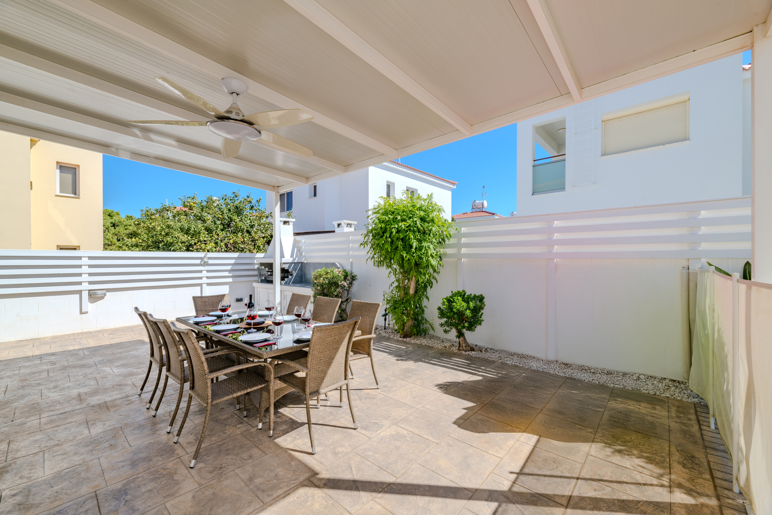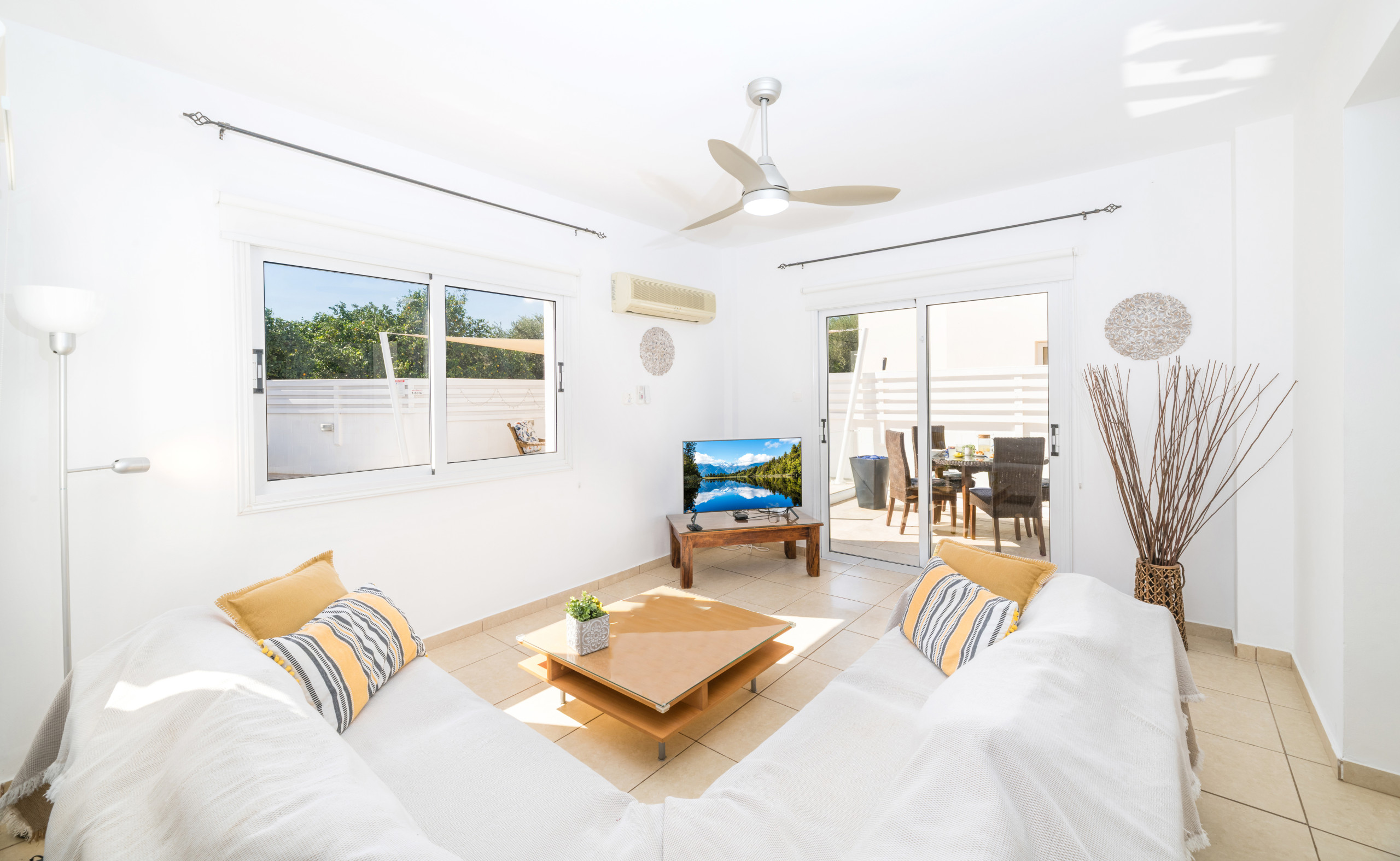 Discover the perfect family escape at Ayia Triada Beach Gardens, a bright and welcoming 3-bedroom villa located in the serene coastal area of Protaras, just moments from the crystal-clear waters of Ayia Triada Beach. Blending comfort, privacy, and convenience, this home-away-from-home is ideal for families or friends seeking a relaxing Cyprus getaway. Inside, guests can enjoy a spacious open-plan living and dining area filled with natural light, a comfortable lounge with a flat-screen TV, and a fully equipped kitchen with everything needed for home-style dining.